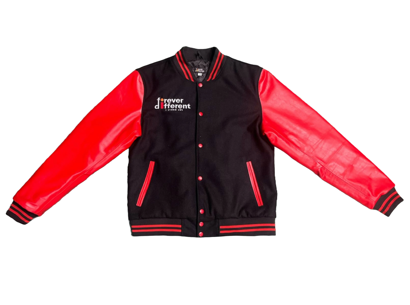 The UNISEX Forever Different and Red Varsity Jacket is a bold statement piece for those who value individuality and cultural pride, these items are perfect for making a statement while embracing the ultimate in comfort and individuality. Featuring a modern fit and Perfect for everyday wear or standing out in a crowd and Crafted for those who embrace bold style and individuality.