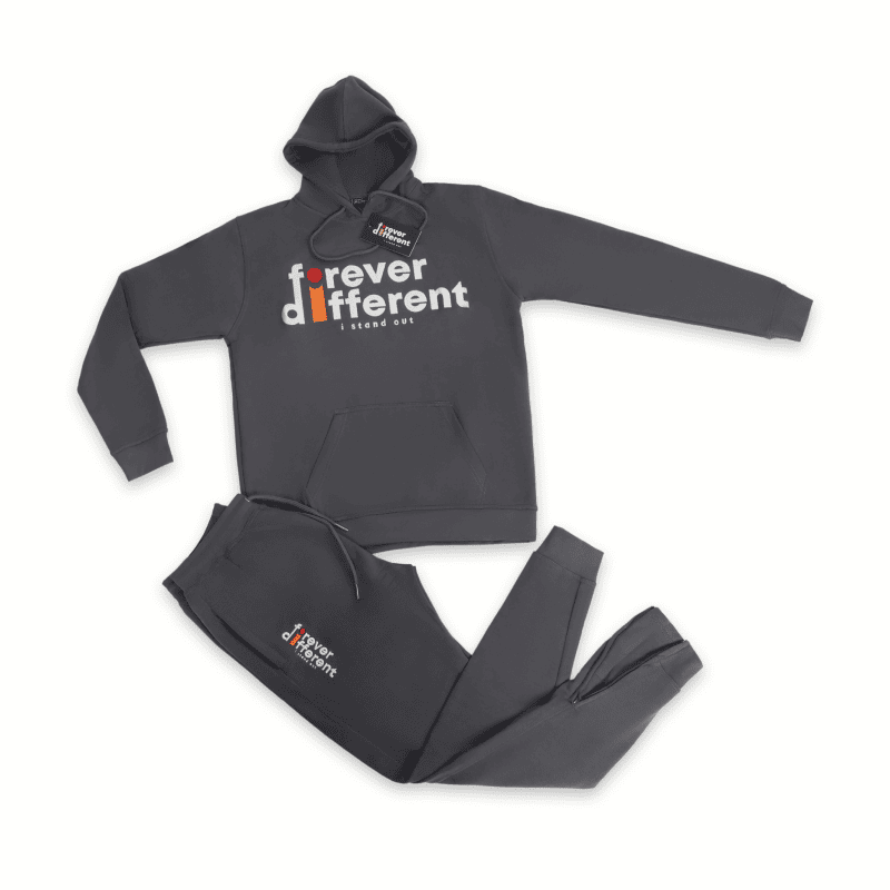 This UNISEX sleek and stylish Forever Different Grey Signature Classic Jogger offers a perfect blend of style and versatility. Its neutral tones and modern fit make it a go-to choice for those seeking an effortless urban aesthetic while staying true to the spirit of cultural pride and individuality. Premium comfort in mind, this set is perfect for embracing your urban edge while celebrating individuality.