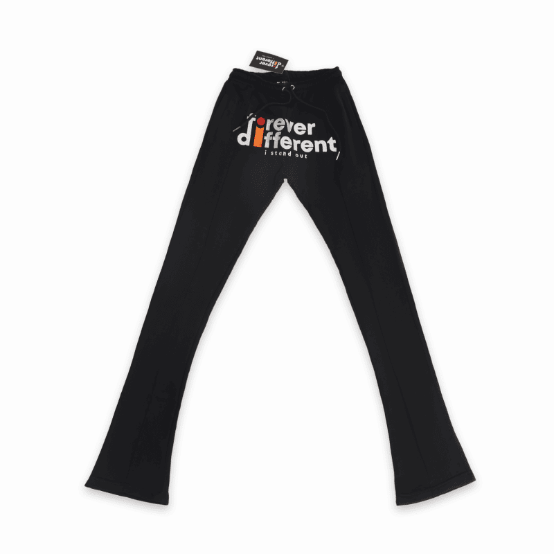 The UNISEX Forever Different Black Signature Classic Seamlessly Stack Pants w/ FOREVER DIFFERNT across the Front blends sleek urban fashion with everyday functionality. Featuring a modern fit and is a bold statement piece for those who value individuality and cultural pride. Its sleek, minimalistic design ensures it pairs effortlessly with any outfit while making a powerful impression. Perfect for everyday wear or standing out in a crowd, Crafted for those who embrace bold style and individuality, the ideal for making a subtle yet impactful statement.